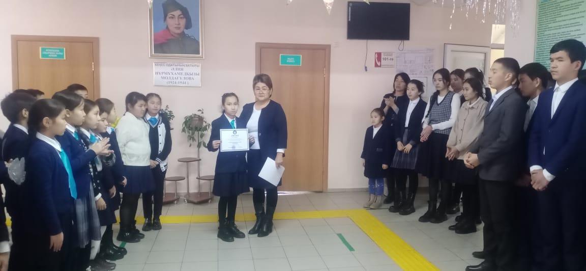27 желтоқсан 2022 0 1 2 3 4 5 «Экологиялық пирамида» атты ғылыми жоба байқауы Әлия Молдағұлова атындағы орта мектебінің 6 сынып оқушысы Сағатбай Айдана 5 – 10 сынып оқушылары арасында өткізілген аудандық «Экологиялық пирамида» атты ғылыми жоба байқауында жүлделі III орынды иеленіп,дипломмен марапатталды. #Құттықтаймыз!