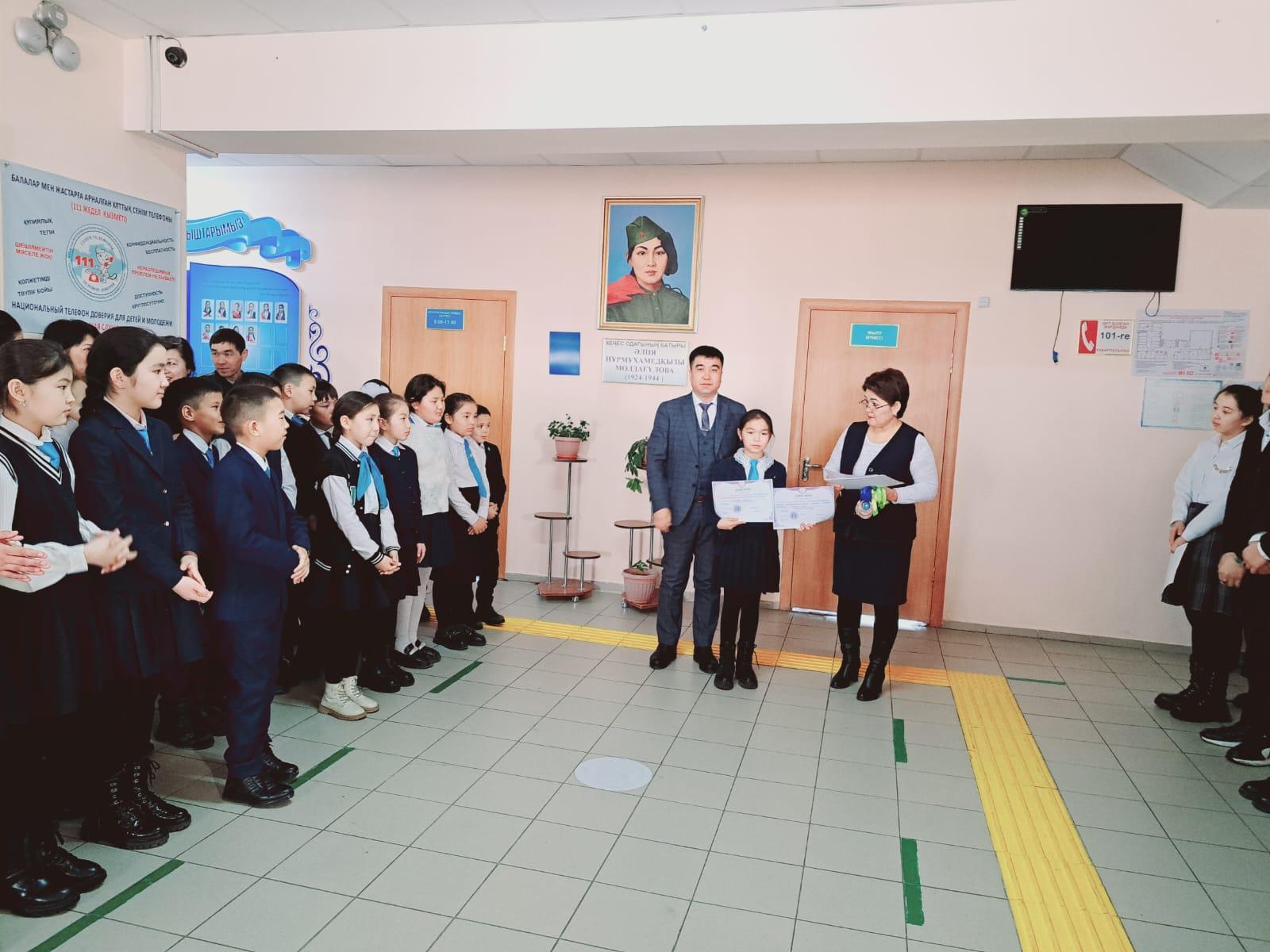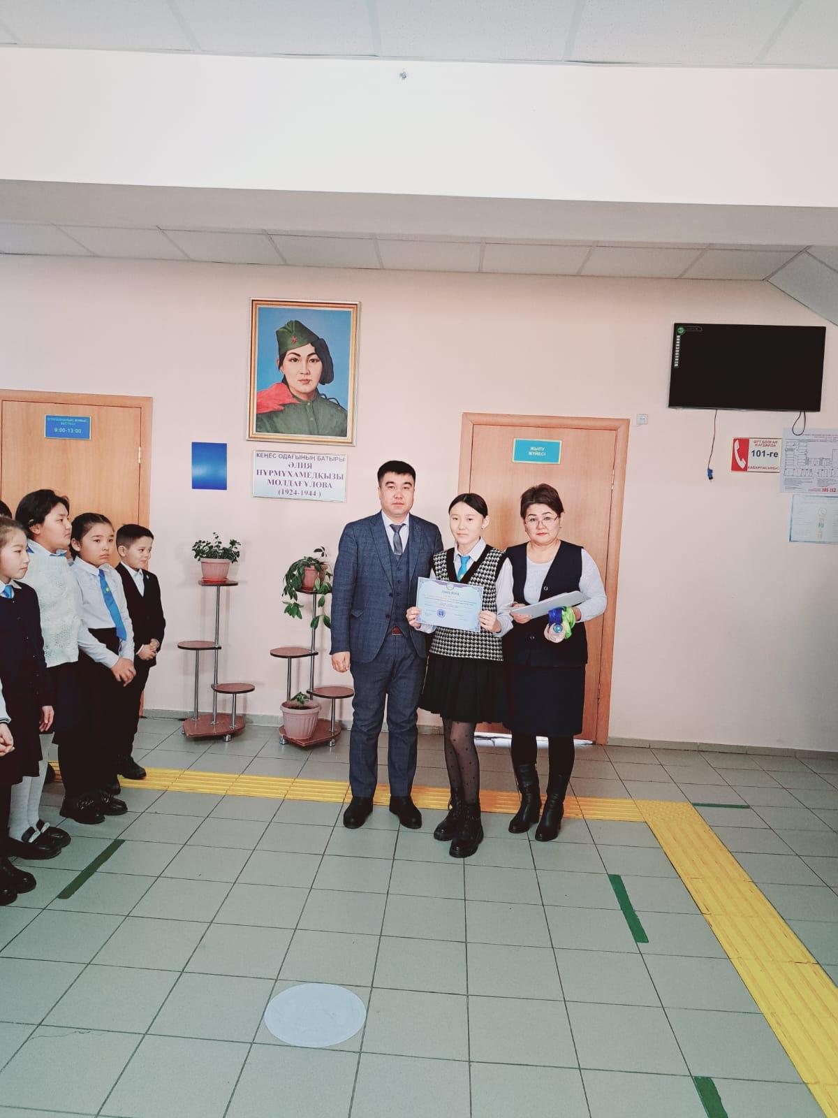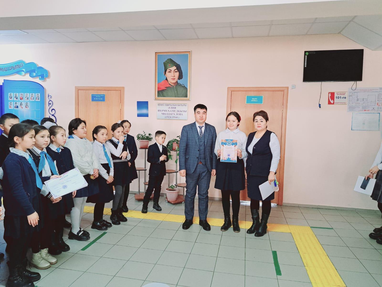 Әлия Молдағұлова атындағы орта мектебінде 5 – 10 сынып оқушылары арасында өткізілген «Табиғатын сүйемін туған елдің» атты аудандық көркемсөз оқу байқауының жеңімпаздары 6 сынып оқушысы Бақтыбек Жамбыл I дәрежелі дипломмен,9 сынып оқушысы Мұңалбекова Зейнеп II дәрежелі дипломмен,8 сынып оқушысы Нәдірбек Айсұлу II дәрежелі дипломмен ,5 «а» сынып оқушысы Бақытжан Сезім III дәрежелі дипломмен,7 сынып оқушысы Нәдірбек Балым III дәрежелі дипломмен марапатталды.