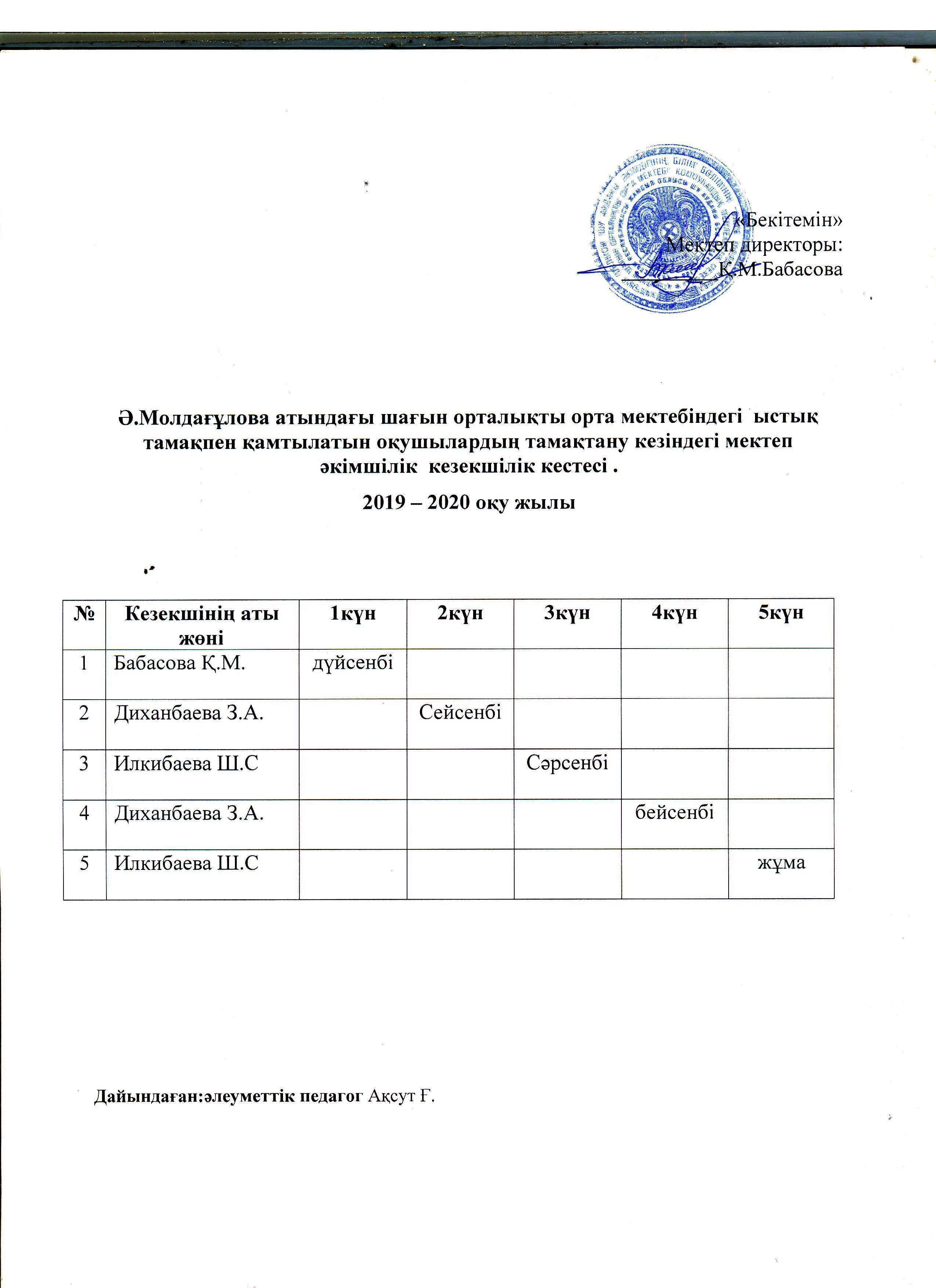 Ыстық тамақ бойынша бұйрықтары мен іс-қағаздары » "Әлия Молдағұлова атындағы орта мектебі" КММ