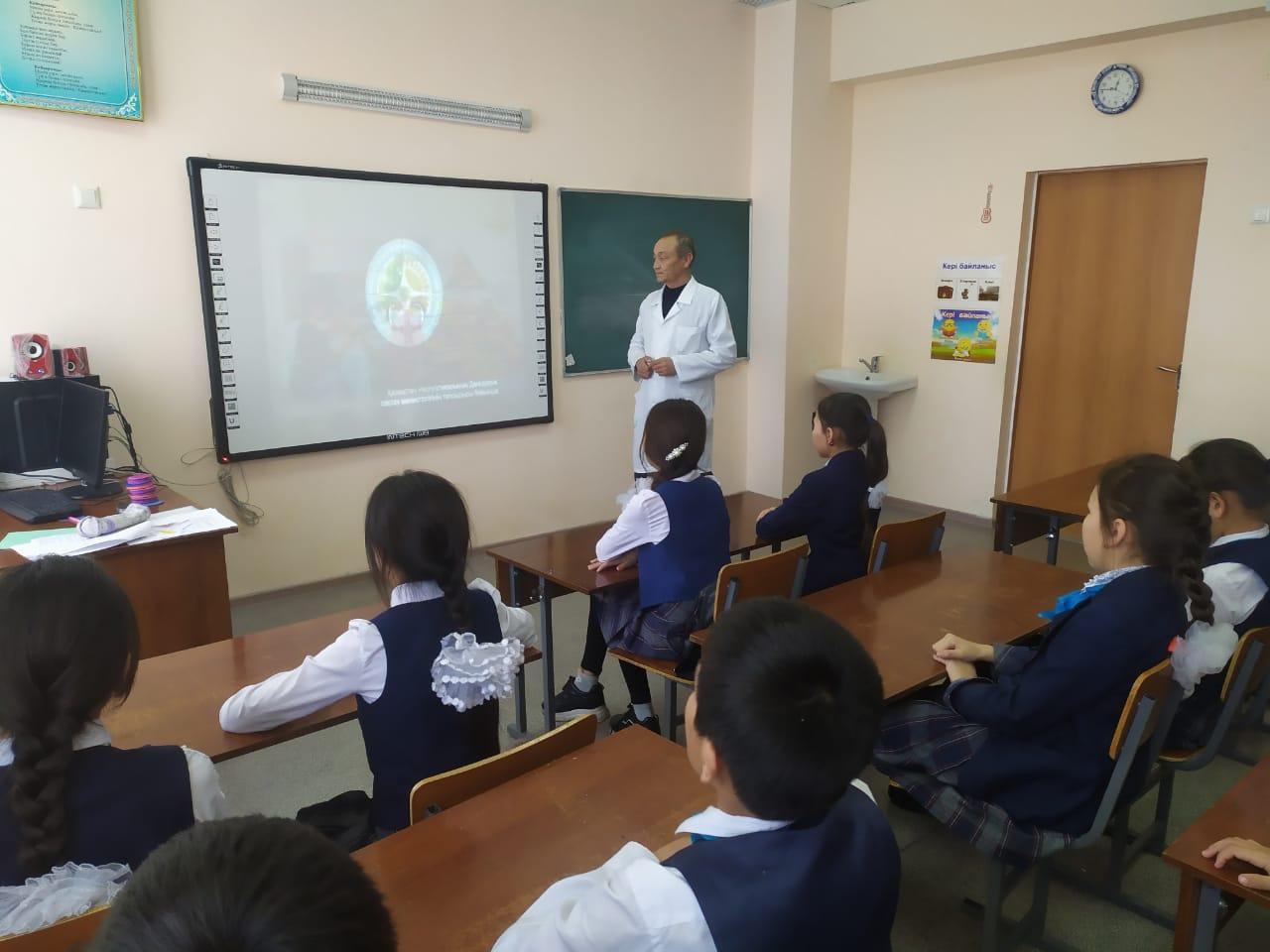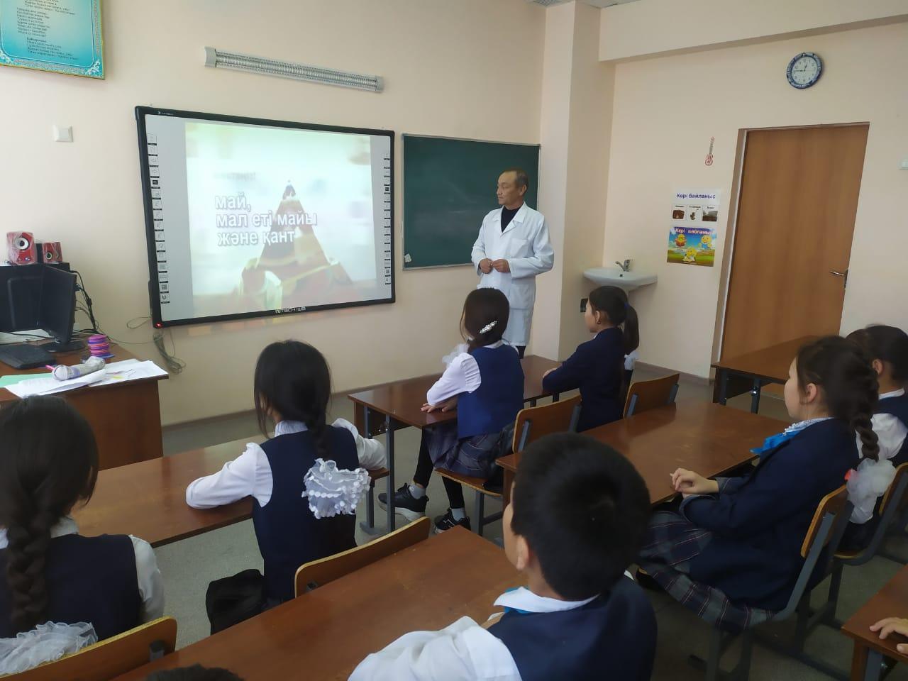 20 ақпан 2020 0 1 2 3 4 5 Дұрыс тамақтану Ә.Молдағұлова атындағы шағын орталықты орта мектебінде мектеп медағасы С.Хасенов 6 сынып оқушыларымен "Дұрыс тамақтану" тақырыбында баяндама оқып , бейнеролик көрсетті.