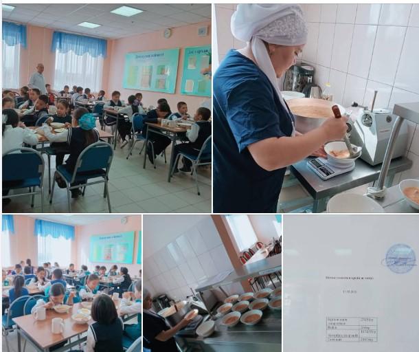 Әлия Молдағұлова атындағы мектептің аспазшысы тамақ дайындау ережелері мен санитарлық - гигиеналық өлшемдердің барлығын қатаң қадағалайды,жұмыс барысында әдістемелік нұсқамаларды қолданады. Аспазшының кәсіби дайындығы,еңбек өтілі, тәжірибесі бар. Қуаттандырылған тағамдар қағидаларымен таныс,әрі тамақ дайындау,оның атаулары ережелерін, тағамның калькуляциясын жасауды біледі. Ас мәзірінің мөлшерлері бақылауға алынған. Мектеп медағасы С.Хасенов күнделікті тамақтардың дәмін татып көріп, тексереді.